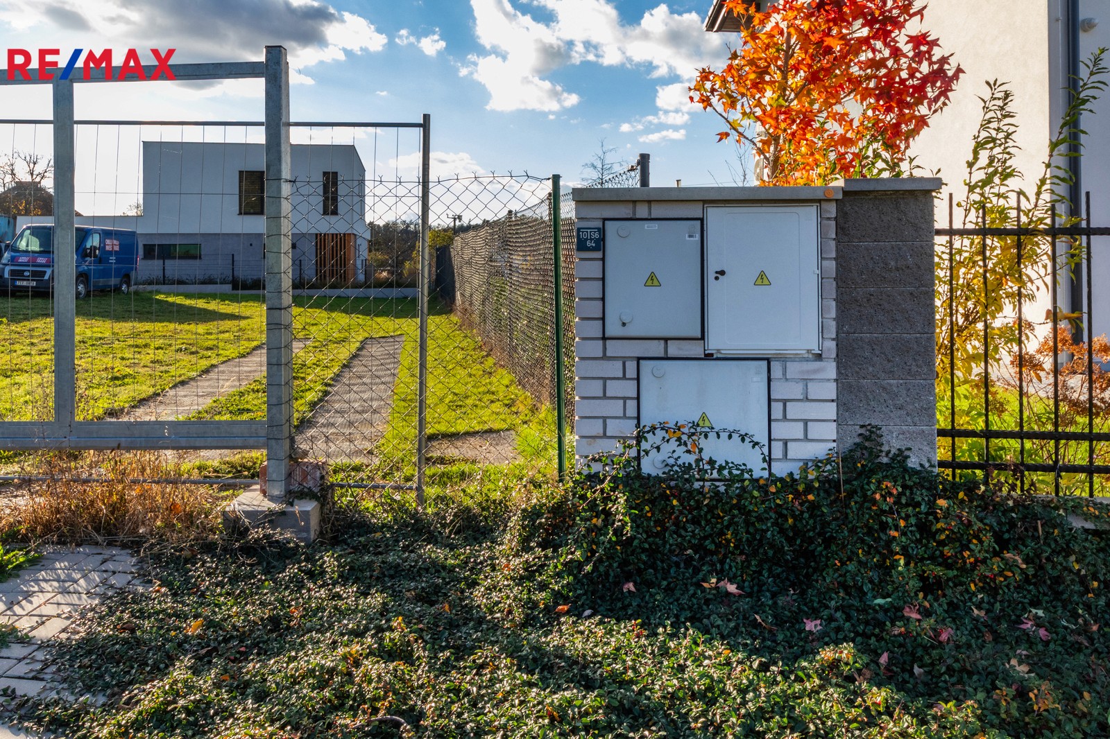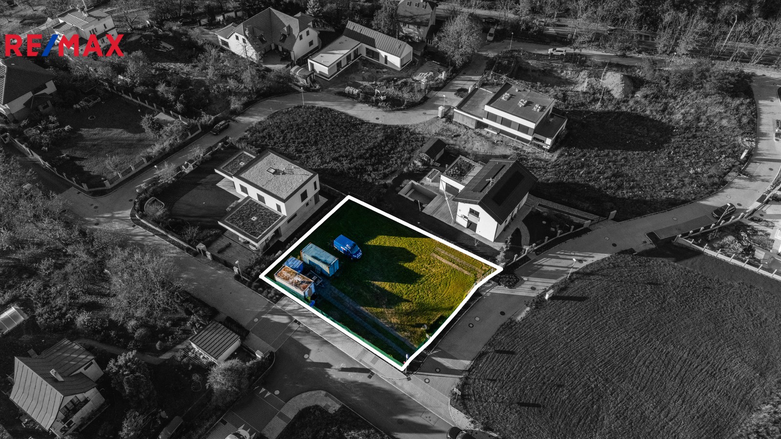 Pozemek je kompletně zasíťovaný – elektřina, voda i kanalizace již zavedeny.
