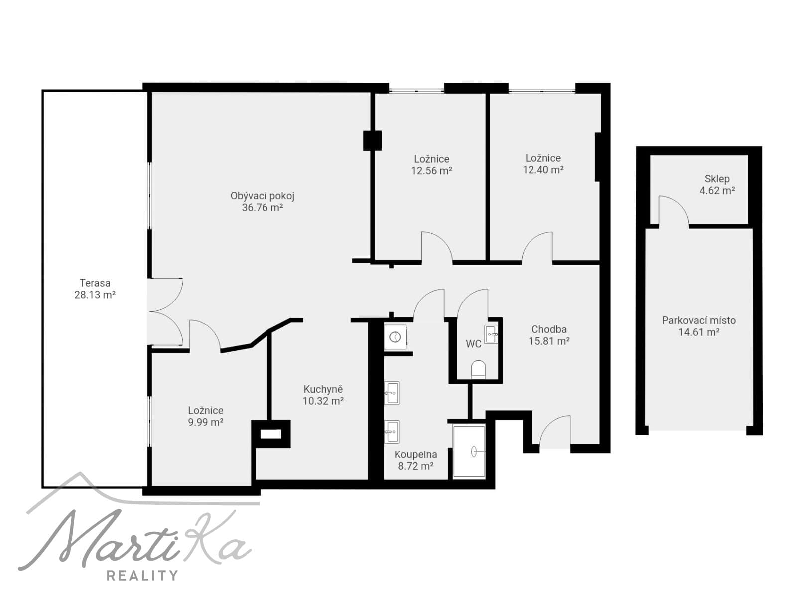 - parkovací stání v garáži 16 m² – pohodlné parkování
